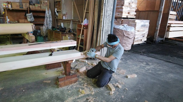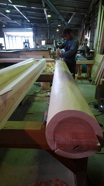 機械に入らない大きな柱は手刻みで!