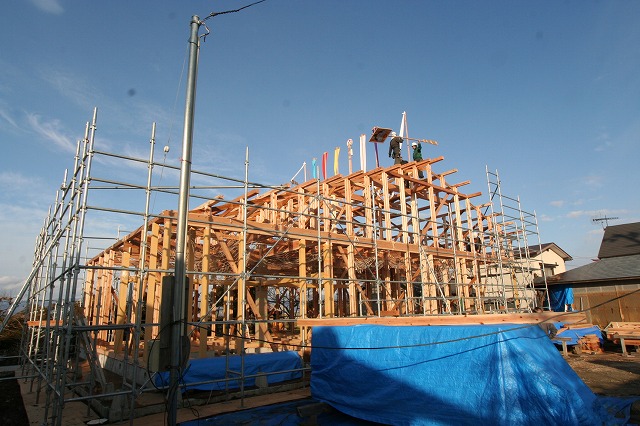 さて先日、上棟式を執り行った会津坂下町の新築現場も雪が全く無く