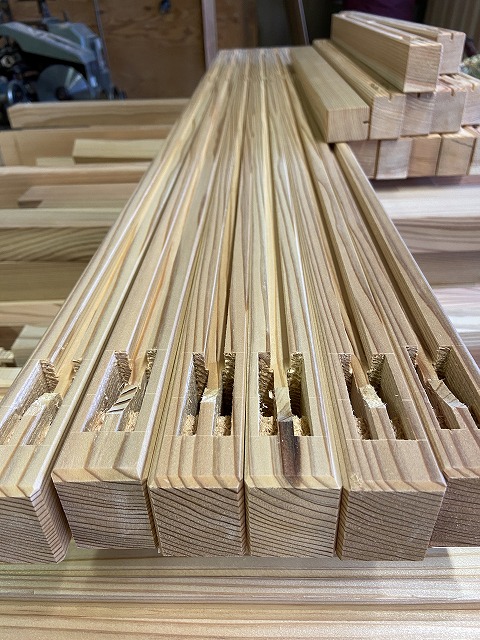 ホゾと呼ばれる部分をホゾ穴に差し込んで1枚の建具(戸)に仕上げていきます!
