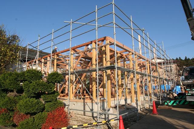 会津若松市河東町の新築工事現場では昨日から建て方が始まりました!