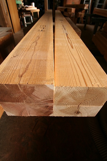 右がハウスメーカー等で使われている人工乾燥した柱で、その中でもA級品です。