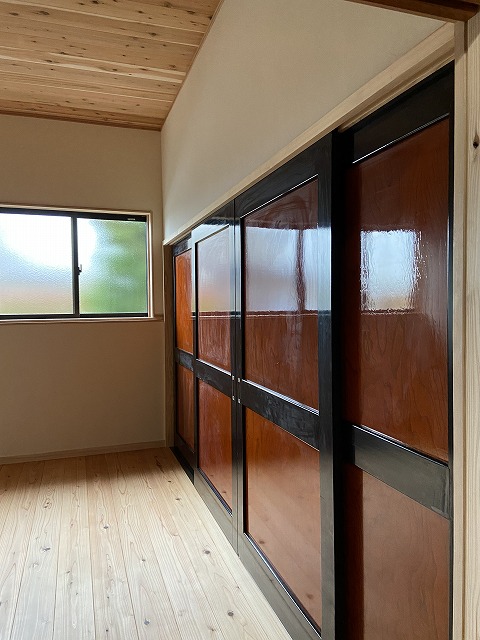 お施主様よりお預かりしていました、古いお住まいで使っていた木製建具は弊社で調整後、