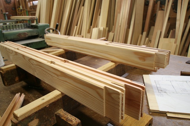 志木の作業場では無垢杉で会津若松市のリフォーム住宅用の