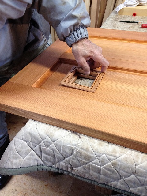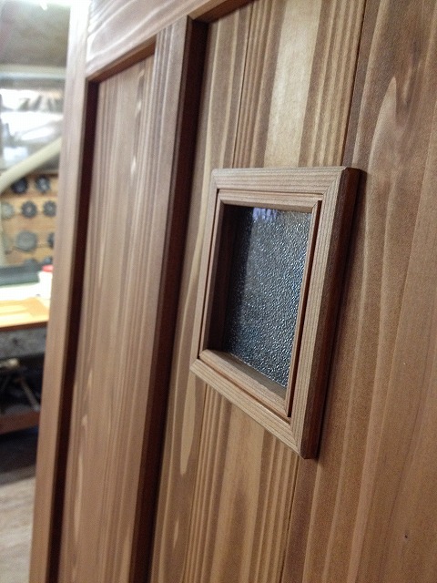 ドア作ってます。 2014年3月14日 なかなかブログ更新できなくてすいません…。 忘れている訳ではないのですけど…。 さてさて、志木の作業場の様子です。 葛飾区の新築住宅用の建具製作も最終追い込みです! トイレドアの小窓取り付けです。 こちらは玄関の引き違い戸です。 ガラスの淵にアクセントとして異なった樹種を埋め込みました。 後は引き手を取り付けて完成です! 鉄、です。 自然素材の家 志木星 英樹 地域生活(街) 東北ブログ 会津若松情報 志木HP