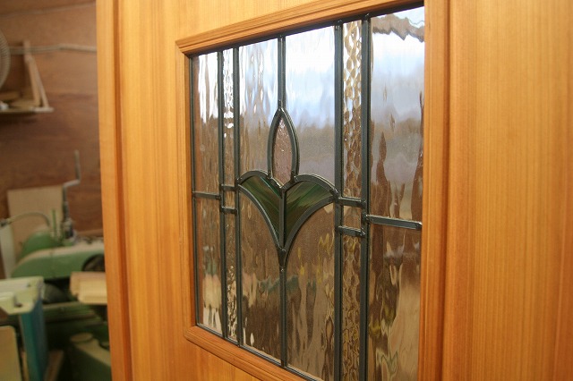 志木製の手作りのドアにお気にりのステンドグラスを取り付けて!