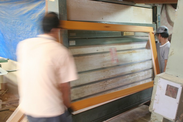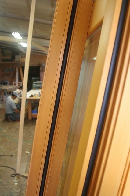 当社作業場では今日から木製の枠にペアガラスがはめ込まれていました。