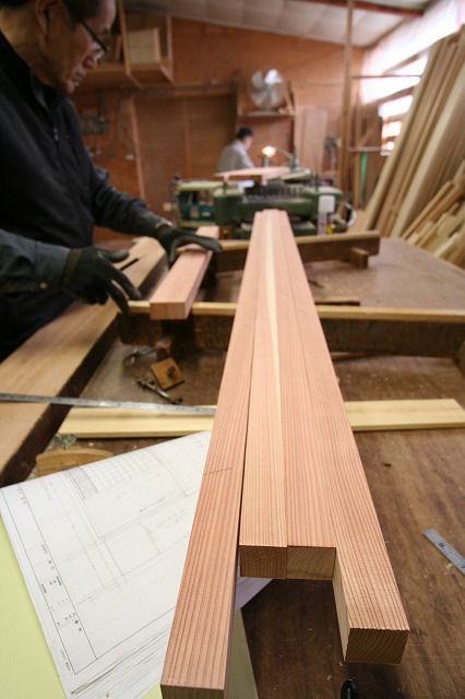 建具製作 本日の様子! 2013年4月13日 茶室のある住まい。会津美里町の新築現場です。 完成した木製サッシを取り付けました。 ウ~ンなかなかです!! 濡れ縁が取り付けられればさらに雰囲気が出てくるでしょうね。 サッシ製作を終えて次は室内の建具製作の真っ最中です! 今日は障子戸を製作しています。 綺麗な杉の柾目です。 この木目をそのまま活かし障子戸に仕上げます! 木の香る建具製作の様子でした。 自然素材の家 志木siki 星 英樹 地域生活(街) 東北ブログ 会津若松情報 志木HP