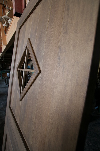 お施主様のイメージ通りヒバを加工して組み立てて、ブラウン色で重ね塗りしました。