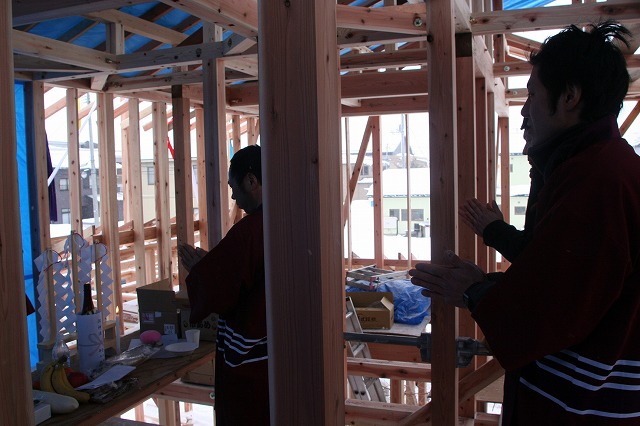 会津の空を彩る五色の旗 2013年2月12日 会津美里町の家が上棟式を迎えました! 鶴と亀の矢羽根と、五色の旗が冬の会津の空を彩りました。 いつもの様に矢羽根の裏には施主様家族に願い事や思いなどを自由に書いて頂いております。 家族そろって楽しい作業の様です!! 激寒の中の餅撒きでしたが、笑顔が絶えない良い上棟式だったと思います。 木の家健康住宅、完成楽しみにしてて下さい。 お施主様、上棟おめでとうございました! 自然素材の家 志木siki 星 英樹 地域生活(街) 東北ブログ 会津若松情報 志木HP