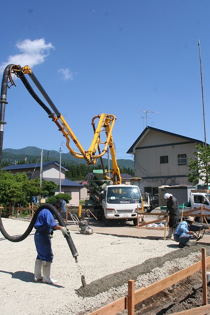 猪苗代の清清しい空気の中、黙々と基礎工事が進んでおります。