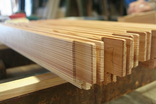 加工が終わればこれらを組んで一枚の建具(扉)にしますが、
