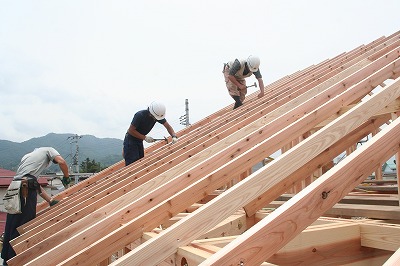 会津若松市の志木の現場では建て方も滞り無く進みホッとしてるところです。