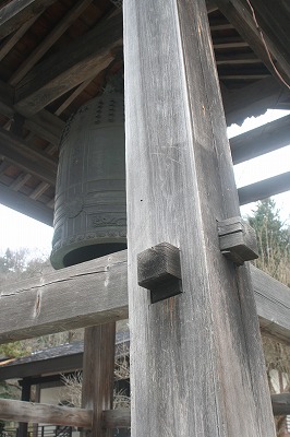 この山門をくぐってさらに石階段を上ると本堂があってその脇に鐘つき堂がある。
