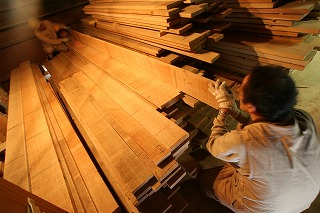 今回、ドアや廻り縁などには森の王様と呼ばれている『ナラ』を使用します。