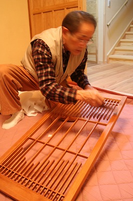 お客様が使っていた建具も工場でリボスを塗ってきれいにして障子紙を貼りました。
