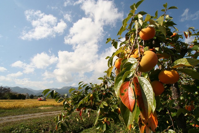 毎年、稲刈り風景と色付いた柿を見ると会津の秋を感じます。