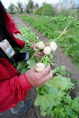 そして外ではオクラ、にんじん、ナス、カブなどが生っているのを見て