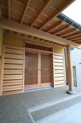 今日、会津若松市の志木の家では玄関に格子戸が取り付けられました!
