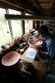 ここ酔月窯さんは創業明治三年から原石を砕くところからほとんど手作業で進められていきます。