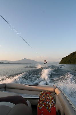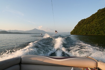 会津若松市から車で約30分走って猪苗代湖でバーベキュウ、ウェイクボードを