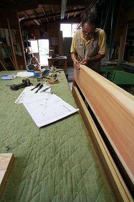 会津若松市の志木の家に取り付ける室内用建具製作してます。