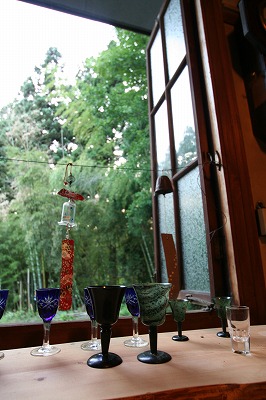 時代を感じさせる木製の窓を開けると向こう側には竹林が見えて心落ち着きます。