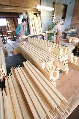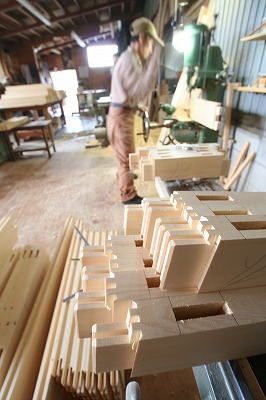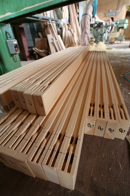 サッシを作っています。 2009年5月29日 こんばんは、志木の星です。 今日は志木の建具作業場からブログです。 志木の建具部では会津若松市の現場用に外部サッシの製作で大忙しです。 下の写真はサッシの縦と横の部分でしてホゾ穴になっている戸縁に対し 端が細くなっている部分(ホゾ)を差し込みピッタリに組んで一枚の戸にします。 上の写真は建具の底辺部に取り付く戸車が入るスペースを掘っているところです。 この穴に後で戸車が入ります。 下の写真はサッシの縦の部分の戸縁になります。 真ん中の溝に特注ペアガラスが入ります。 今回外部サッシで一番背の高いもので2100mmあります。 来週にはサッシの組み方が始まります。 またピッタリいきますよ!!