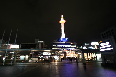 私みたいな観光客が周りでカメラでパチパチ京都タワーを撮ってます。