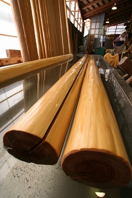 そしてなにより磨いた丸太を洗う沢水がかなり冷たい!