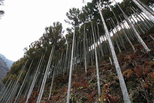 北山の急な斜面が養分をすばやく流してしまい杉が吸いきれないそうです。