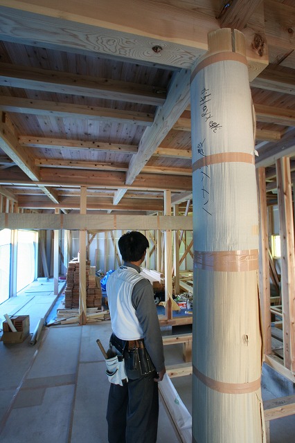 自然素材の家の特権! (いわき市の新築現場) 2026年1月5日2015年6月3日 いわき市の新築工事現場からです! 構造材、ほとんど隠れてしまうのでその前にブログUPしときます! 梁の大きなもので450mmあります。 360mm、300mmの梁が細く見えますね! 要所には少しだけ太めの柱を建てています。 尺柱は合計5本あります。 流行に流されないのが無垢の木の家のイイとこだと思います。 そう言えば、今日はいわき市も少し雨がぱらついて外の湿度が高く感じましたが、 現場の中はサッパリしていました! 自然素材の家の特権ですね! 自然素材の家 志木 星 英樹