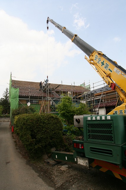 母屋の屋根を瓦から鋼板に張り替えする工事ですが、天候などに左右されて瓦落しが今になりました。