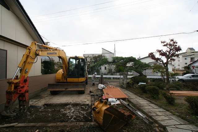 住宅ではありませんが、ご自宅の敷地内に店舗を新築するため既存の門扉や車庫などを解体中です!