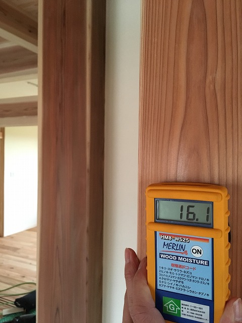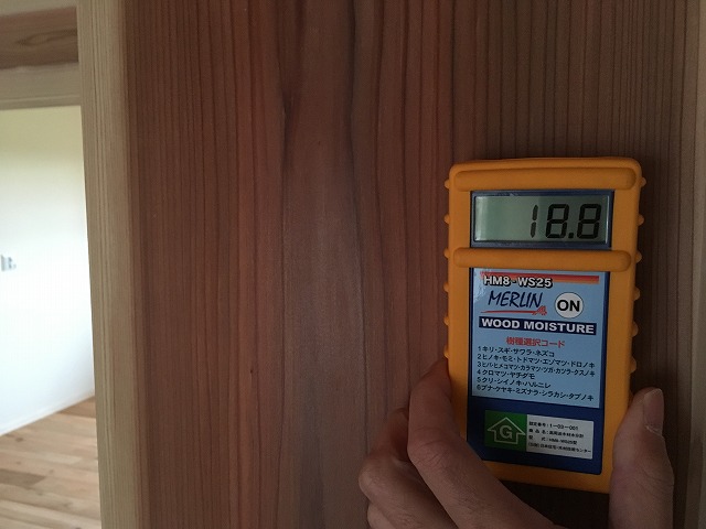 下の写真はまもなくお引渡しの会津美里町の新築住宅の柱の含水率を計測した時のものです。