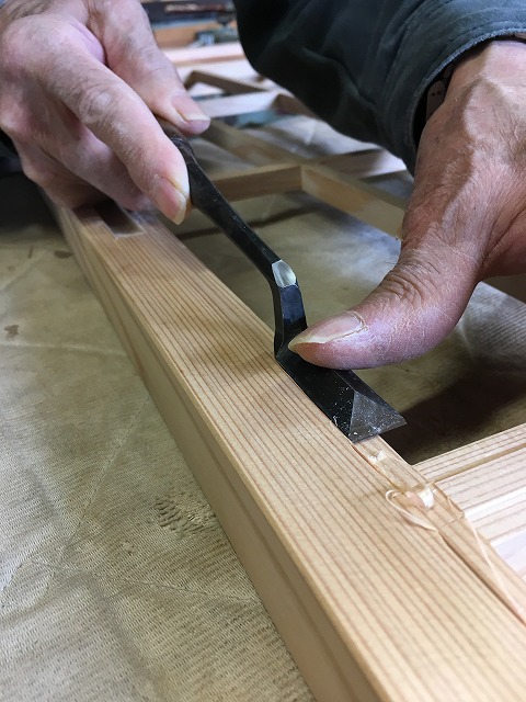 無垢の杉を加工して会津若松市の新築住宅用の障子戸を製作しています。