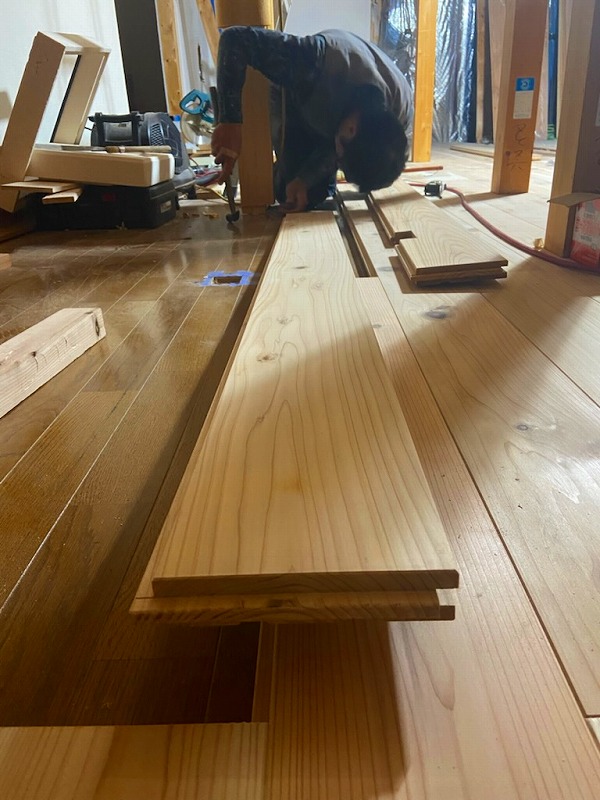 無垢のスギやタモ等を使い、お施主様と一緒にデザインを決めました。
