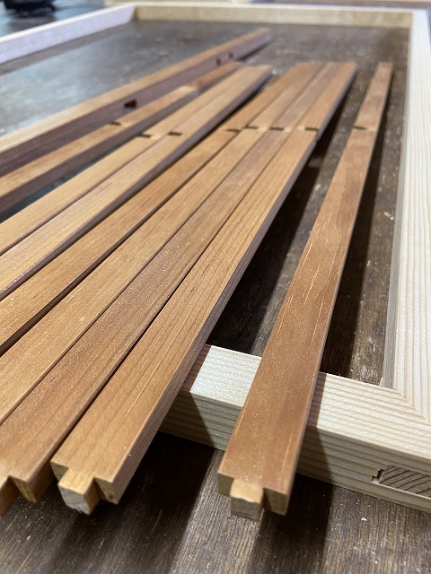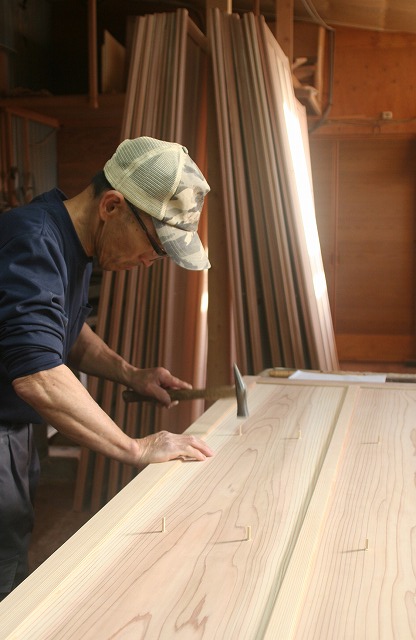 ホゾを組み込んで少しずつ「戸」の形になっていきます。