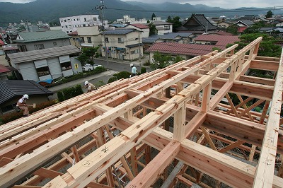 平成20年7月22、23日『志木の家』建て方(現場は会津若松市)がいよいよ始まりました!!