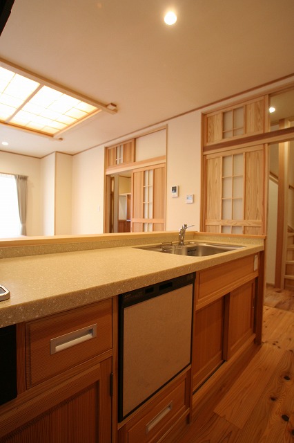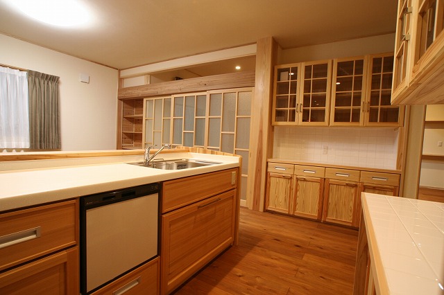 食器棚、システムキッチン、掘りごたつも志木製です。(合板類、化学塗料等を使用していません)