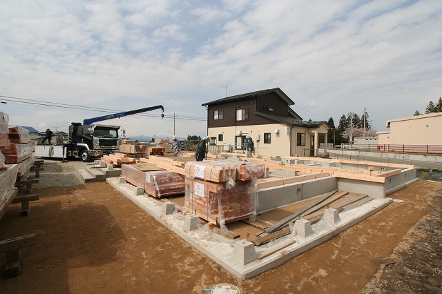 写真の木材は今月上棟を控えている会津美里町の新築住宅の木材です。