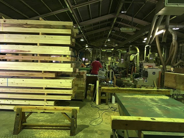 プレカット工場には様々な工務店の木材が置かれていましたが、