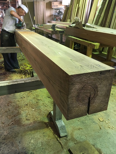 昨日はプレカットの機械では加工出来ない大きな尺柱などを私が志木の工場まで運んできました。